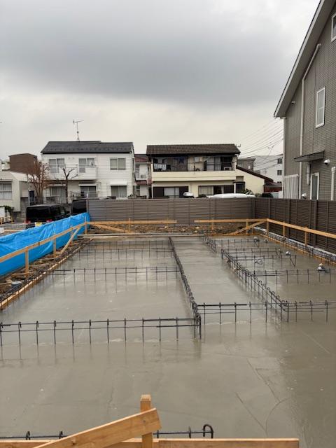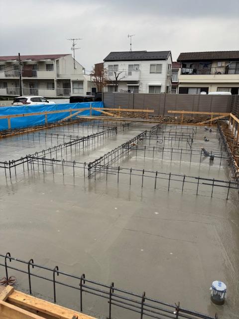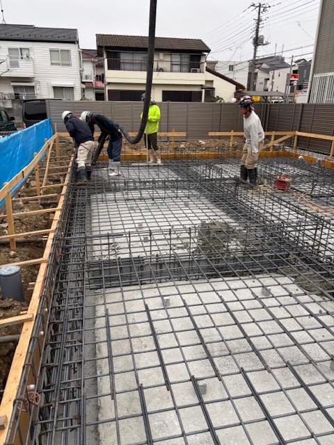 ベースコンの打設です 雨が降らなければいいんだけど…